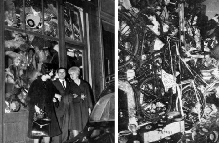 누보 레알리즘의 설치 작품으로 갤러리 공간을 쓰레기로 가득 채워 소비 사회 비판.