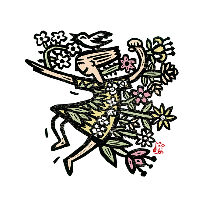 이윤엽(1968~/한국) 봄날에(목판화/33×29cm/2013년)