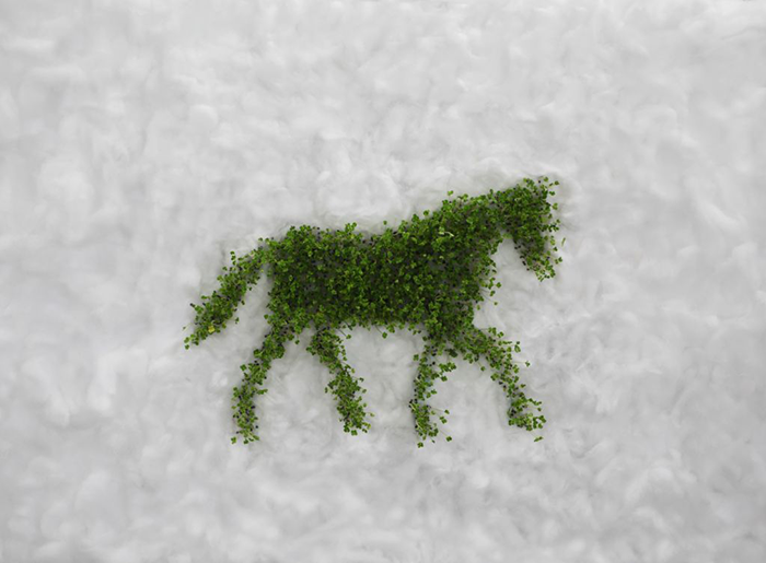 권순왕(1968~/한국) 자라나는 이미지-말(목화솜, 배추 씨앗/55×80cm/2018년)