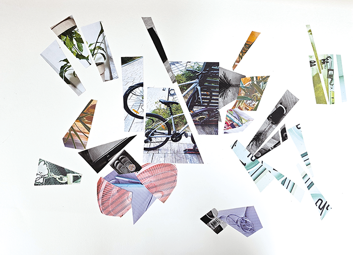 주위의 사물을 둘러보며 사진 촬영을 한 뒤 출력하여 콜라주했다.