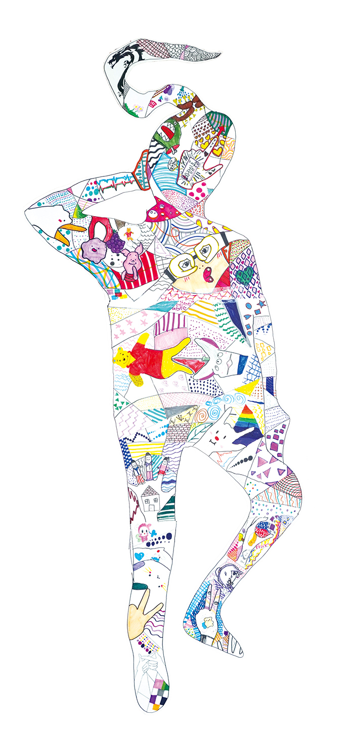 신민철 외 3명(학생 작품) 자유롭게(종이에 유성 매직, 채색 도구/165×77cm/2023년)