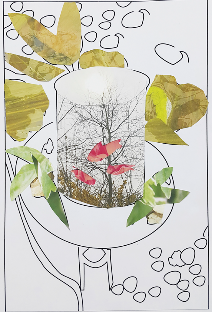 정재연(학생 작품) 개화(종이에 사진 콜라주와 펜 드로잉/A4/2016년)