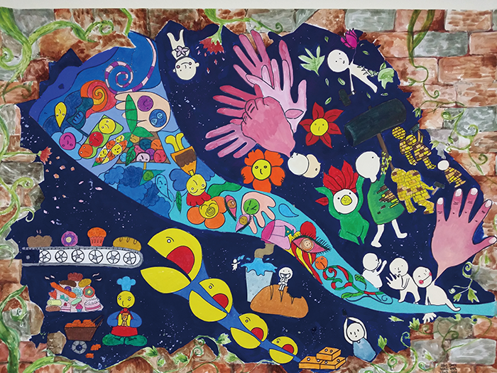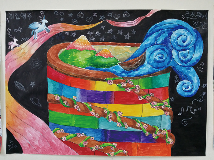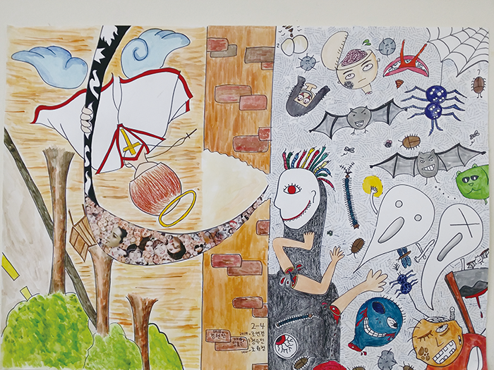 문정해 외(학생 작품) 시 ‘벽’(정호승)을 읽고(종이에 포스터 물감/전지 크기/2015년)