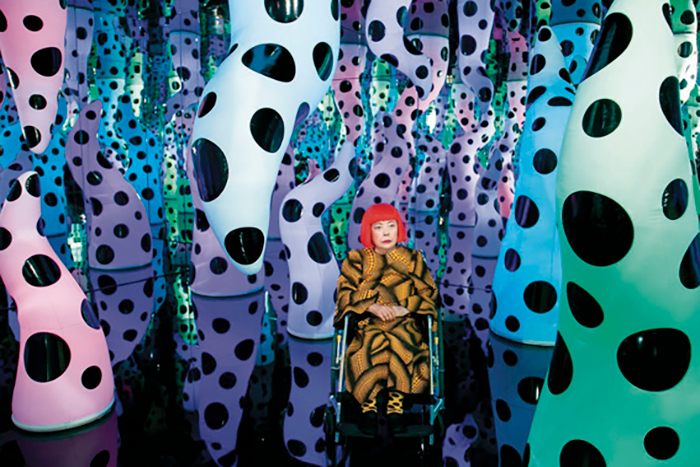 쿠사마 야요이(草間彌生/1929~/일본) 사랑은 부름이다(나무, 금속, 유리거울, 타일, 아크릴판, 고무, 조명, 스피커, 소리 등 혼합 재료/4.43×8.65×6.08m/2013년 뉴욕 데이비드즈워너갤러리 전시 장면)