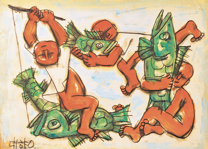 이중섭(1916~1956/한국) 물고기와 아이들(종이에 잉크, 유채/27×39.5cm/1950년대)