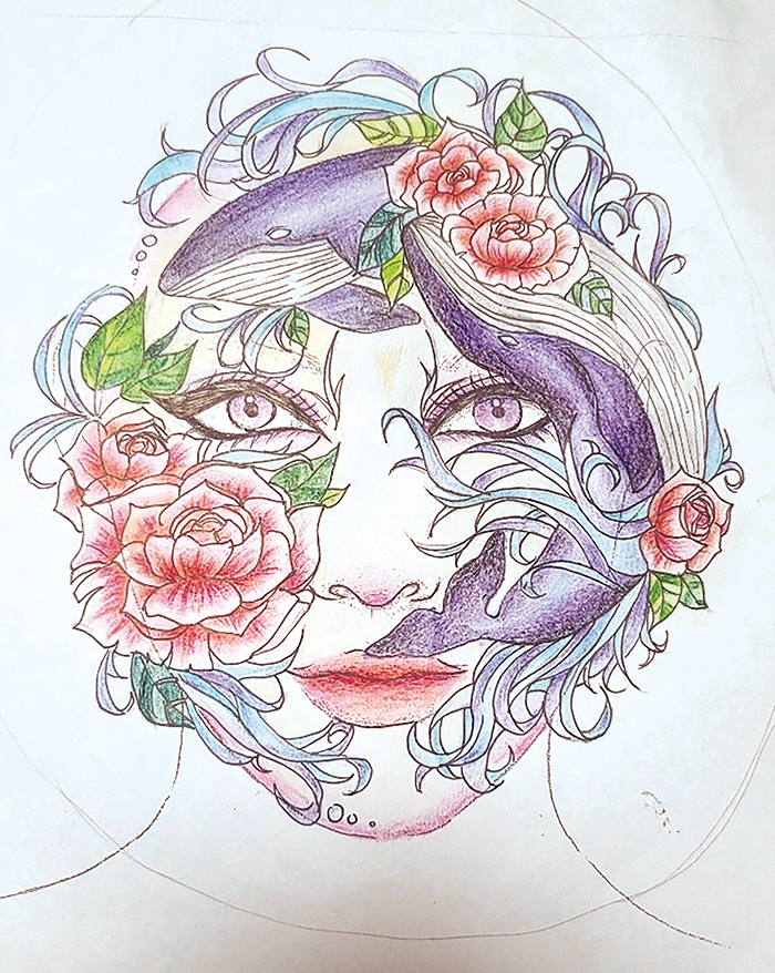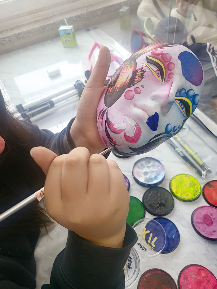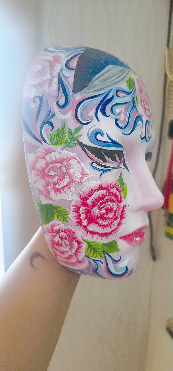 김신영(학생 작품) 꽃 속의 나(가면에 아크릴 물감/40×25cm/2022년)