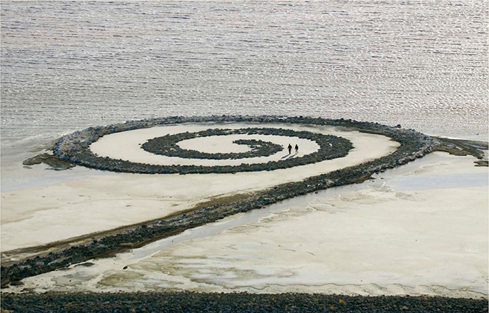 스미드슨(Smithson. Robert/1938~1973/미국) 나선형의 방파제(현무암, 석회암, 흙/길이 457m, 너비 457.2m/1970년/미국 유타주 그레이트솔트레이크 로젤포인트)