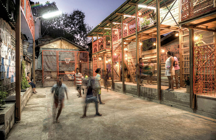 오래된 낙후 지역, 구석진 동네의 조그만 땅에 조명과 놀이 시설을 갖춘 주민들의 모임 터를 만들었다. 어른들은 대화하면서 밤 시간을 보낼 수 있고, 아이들은 농구를 하거나 나무 벽을 오르내리면서 신나게 뛰어놀 수 있다. 1년에 걸친 시공사(TYIN tegnestue Architects)의 철저한 계획과 주민들의 적극적인 참여에 힘입어 단 3주만에 완성했다.