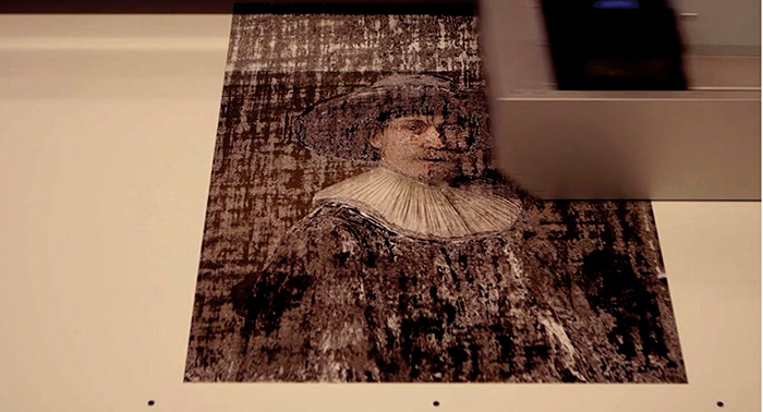 컴퓨터 프로그램으로 렘브란트 작품의 특성을 분석하여 그가 즐겨 택했던 소재와 방식을 데이터로 환산한 후, 작풍을 그대로 재현하는 ‘넥스트 렘브란트(The Next Rembrandt)’ 프로젝트의 작업 장면