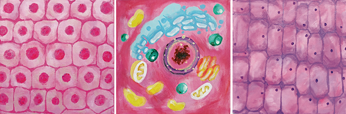 남지원(학생 작품) 세포 추상화(캔버스에 아크릴 물감/각 20×20cm/2015년)