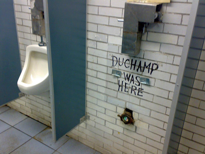 사라진 변기 어느 공중화장실, 변기 자리에 남겨진 낙서