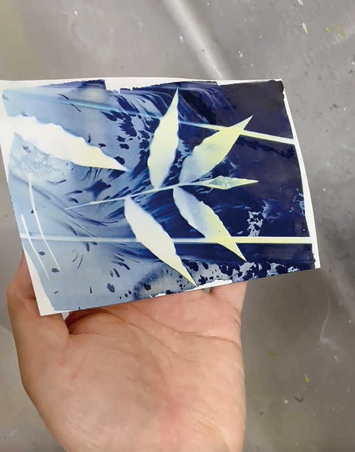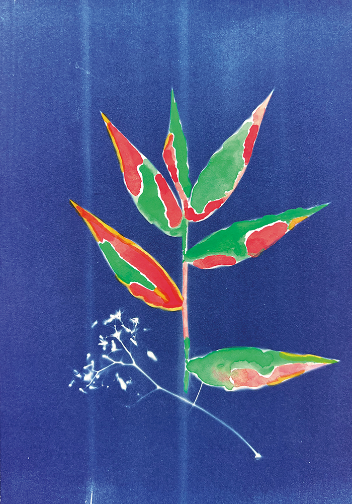 김진우(학생 작품) 낙엽(청사진용 감광 용액을 바른 종이 위에 수채 물감/20×18cm/2023년)