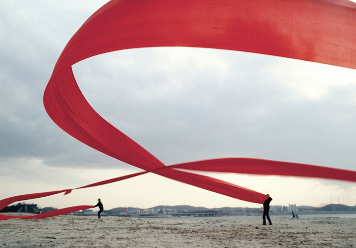 이승택(1932~/한국) 바람-민속놀이(붉은 천/바람에 따라 크기가 변함/1971년)