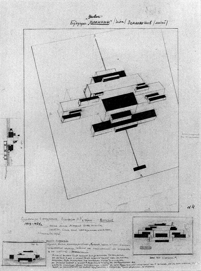 말레비치, 지구 거주자를 위한 미래 플라니츠(종이에 연필/1923-1924년/상트페테르브르크 미술관)