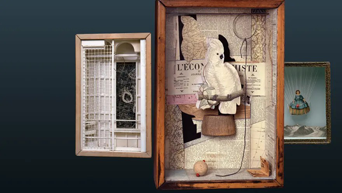 조셉 코넬(Joseph Cornell/1903~1972/미국) 독학 예술가로 1940년대 골동품상과 중고 서점에서 물건들(발견된 오브제)을 수집하여 깊이가 얕은 상자에 조합함으로써 신비롭고 호기심을 자아내는 세계를 창조하는 상자 예술가로 알려져 있다(로얄아케데미 전시 이미지).
