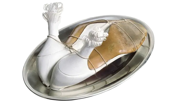 오펜하임(Oppenheim, Méret/1913~1985/스위스) 나의 보모(구두, 종이, 끈, 메탈 접시/14×33×21cm/1936년)