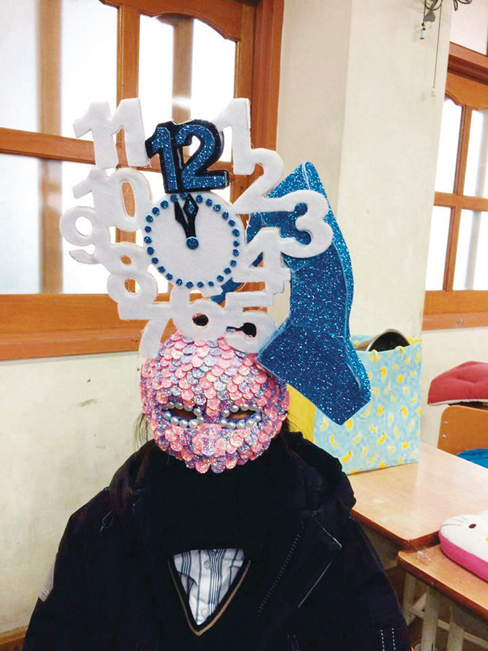 박경은(학생 작품) 미스터 초밥왕 가면(종이 마스크에 아크릴 물감, 지점토/2015년)