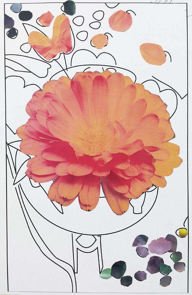 정재연(학생 작품) 개화(종이에 사진 콜라주와 펜 드로잉/A4/2016년)