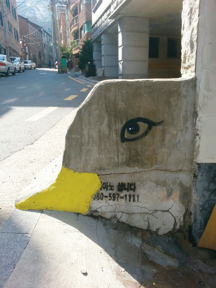 (아래) 독수리가 되고 싶어요(콘크리트 위에 아크릴 물감/55×50cm/2014년/서울문화재단 ‘공공미술 프로젝트’)