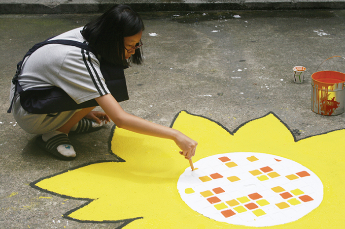 최유경, 이수연, 박다진, 경주현(학생 작품) 활기찬 오름(외부용 수성 페인트/2015년)