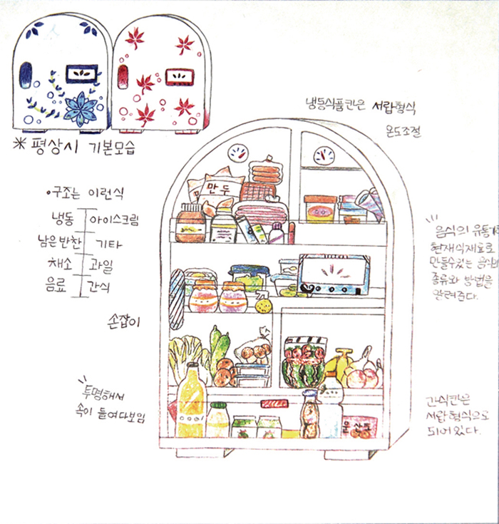 추시운(학생 작품) 투명 냉장고 아이디어 스케치(종이에 펜과 마커/B5/2016년)
