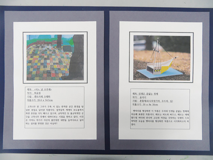 미술 시장의 유통 과정을 경험하면서 미술 작품의 가치를 판단해 보고, 유연하고 개방적인 태도로 미술의 다원적 가치를 이해하고 존중할 수 있다.