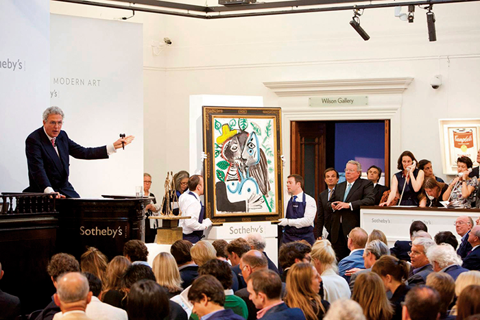 경매에서는 가장 높은 가격을 부른 사람이 작품을 구입하게 된다. 소더비 사의 미술품 경매 장면