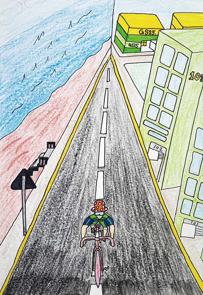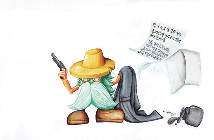 양혜원, 주희욱(학생 작품) 콧수염 난 총잡이(종이에 색연필/29.5×21cm/2016년)