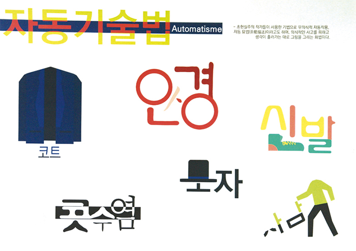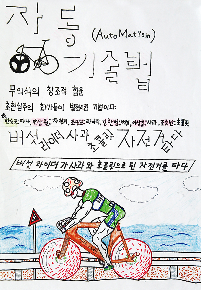 자동기술법으로 각자 떠오르는 단어들을 자유롭게 쏟아내 창의적인 주제로 발전시킬 수 있으며, 작품 제작에 필요한 언어와 이미지 구성 등을 연상하는 데 기여할 수 있다.