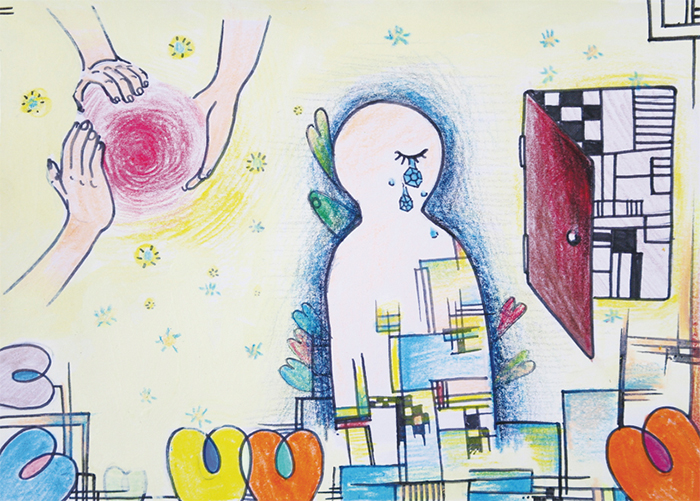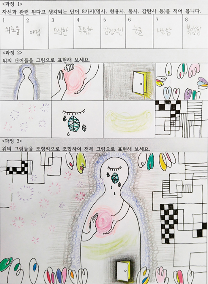 김민지, 김은영(학생 작품) 나(종이에 아크릴 물감, 색연필, 펜/20×27cm/2016년)