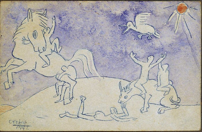이중섭(1916~1956/한국) 신화에서(종이에 청먹, 채색/9×14cm/1941년)